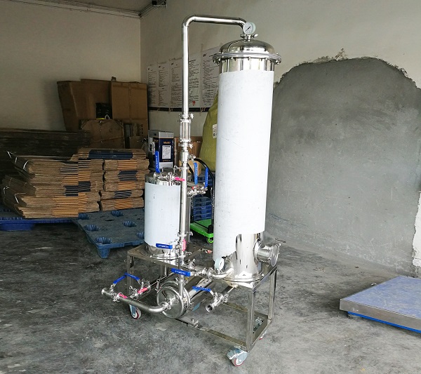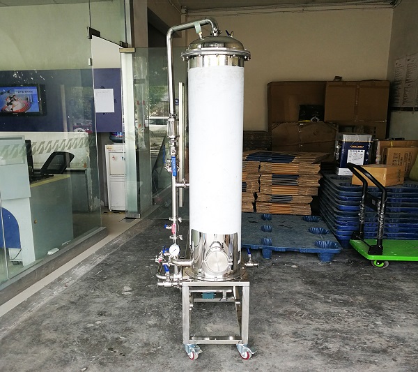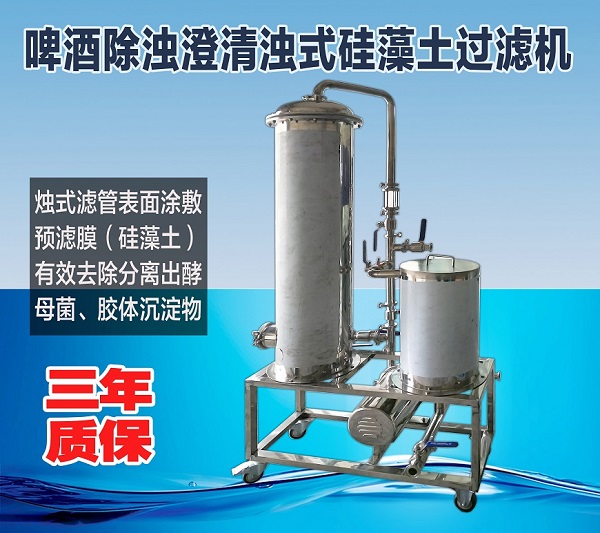 燭式過濾機是一種新型的過濾機。采取在燭式濾管表面涂敷預(yù)濾膜(硅藻土)和在過濾機內(nèi)加壓進行的方式,具有較高的分離精度、能從啤酒中分離出酵母菌、膠體沉淀物,生產(chǎn)出清澈透明的啤酒。